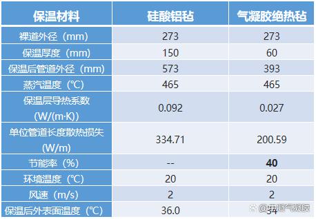 使用150mm厚的硅酸鋁和使用60mm的氣凝膠絕熱氈的熱量損失相比較,使用氣凝膠方案的節(jié)能率可達40%以上。
